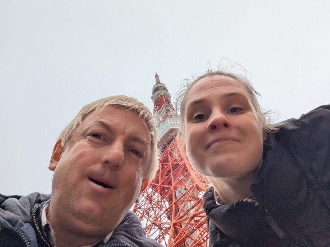 From here we go straight to the modern and to do one of the tourist things we’ve really wanted to do and which got scratched off when we woke to snow and grey skies, rendering such a visit all but meaningless. We’re going to Tokyo Tower. This is the red and white Japanese taller version of the Eiffel Tower. It was also the tallest building in Japan until Tokyo’s Skytree was built in 2012. Incidentally, Skytree then totally eclipsed Tokyo Tower and actually makes it look small on the skyline even as the Tower asserts its own dominance. Skytree is almost twice as tall, standing at 634 metres as opposed to the Tower’s 333 metres. Oh, the Eiffel Tower is shorter by just three metres.  We haven’t managed to make it up Skytree this trip and – spoiler before you read about our last day of tomorrow – we don’t. And even today we don’t go all the way up to the top of Tokyo Tower. We decide to keep that in the bank as something to pull out on the next trip, as will be a visit to Skytree.